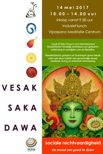 Vesak (in het Tibetaans: Saka Dawa) is een internationaal boeddhistisch, feestelijk eerbetoon aan de geboorte, verlichting en het overlijden van de Boeddha. Met verschillende boeddhistische groepen in Groningen organiseren we deze gezamenlijke viering met als thema 'sociale rechtvaardigheid – de moed om goed te doen'. Vanuit de diverse boeddhistische stromingen vinden er voordrachten, chantings, meditaties en rituelen plaats. De dag wordt met een gezamenlijke lunchmaaltijd afgesloten.